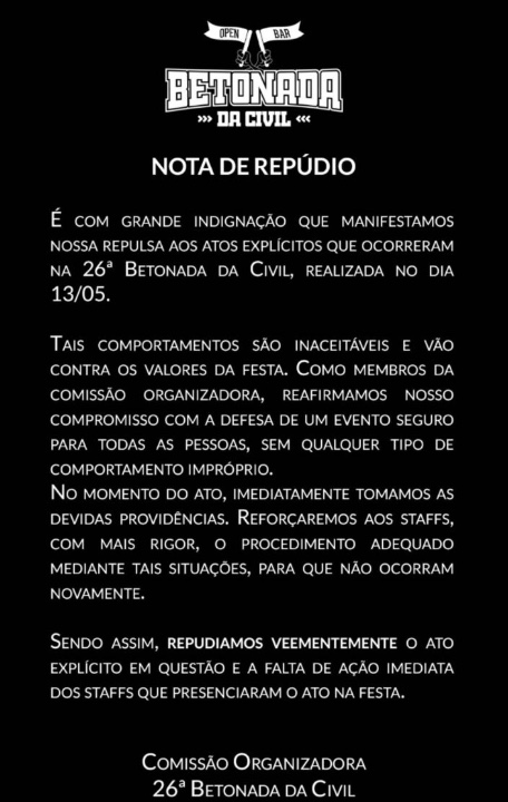 Um casal foi flagrado fazendo sexo em público na festa universitária Betonada, de alunos de Engenharia Civil na Universidade Federal de Santa Catarina (UFSC).