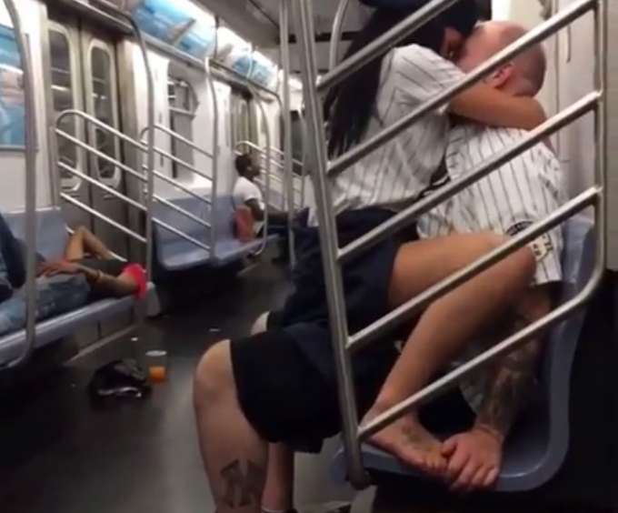 No último fim de semana, após um dos jogos principais de beisebol em New York, um casal de torcedores retornava da partida e en tão decidiu transar sem se preocupar com outros passageiros.