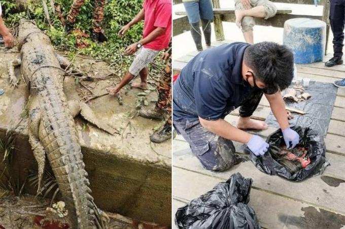 Algumas partes do corpo de uma criança identificada como Ricky Ganya, de 14 anos, foi encontrada dentro do estômago de um crocodilo gigante capturado na Malásia.