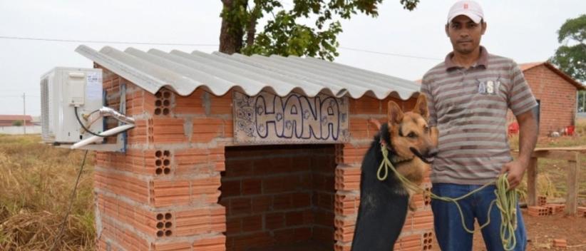 Morar em Tocantins é sinônimo de viver no calor. Afinal, são registradas temperaturas em torno dos 40º na maior parte do ano. Pensando no conforto de sua cachorra, um morador de Guaraí resolveu instalar um ar-condicionado na casinha de Hana, uma pastor alemão.