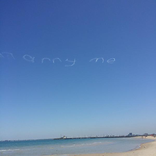 O jovem identificado apenas como Michael, contratou um piloto de avião para escrever o pedido que dizia: “Casa comigo, Maree”, juntamente com a imagem de um coração.