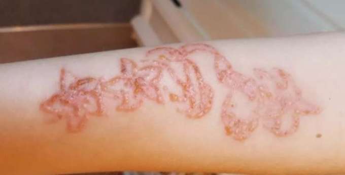 Durante viagem de férias à Grécia, Kirsty Koorts deixou que Teigan, a filha de 13 anos, ganhasse uma tatuagem provisória no antebraço esquerdo. Dois dias após, o local da tatuagem de henna começou a coçar e a desenvolver queimaduras. A menina teve uma forte alergia ao produto e logo veio uma infecção.