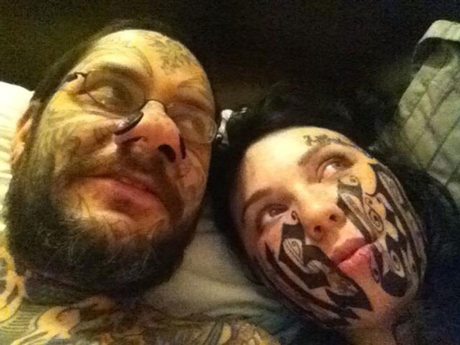O tatuador Rouslan Toumaniantz , que ficou famoso após tatuar 56 estrelas no rosto de uma adolescente, resolveu declarar o seu amor pela namorada. Ele tatuou o seu nome no rosto da amada. O curioso é que o casal se conhecia há menos de 24 horas.