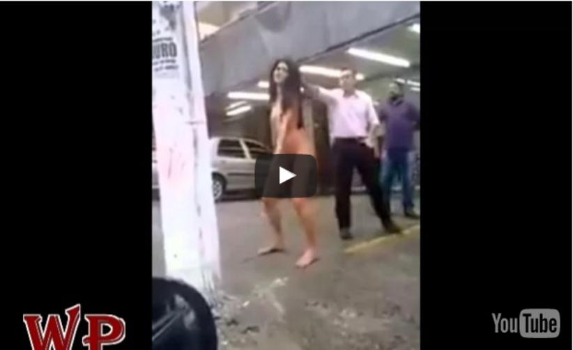 Uma mulher não identificada foi flagrada dançando nua em frente a uma igreja evangélica. A cena foi registrada por algumas pessoas que passavam pelo local. A polícia foi chamada até o local, mas ainda não forneceu detalhes sobre o caso.