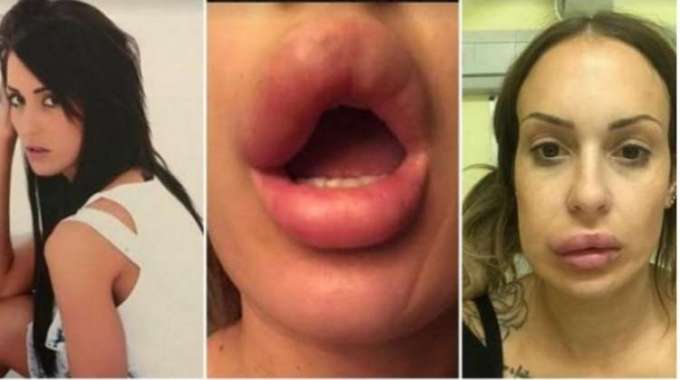 Siobhan Phelan, 30, teve que ser levada para o hospital pois corria o risco de ter a boca desfigurada após um tratamento que custou cerca de R$ 514, no Reino Unido.