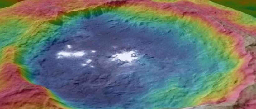Orbitando o planeta anão Ceres há seis meses, a sonda Dawn enviou imagens que mostram luzes brilhantes dentro de uma cratera. No começo do ano, a Dawn já havia registrado o mesmo fenômeno em uma outra cratera. Os cientistas ainda não sabem identificar o que seriam esses pontos.