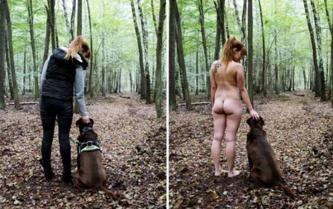 A fotógrafa alemã Sophia Vogel registrou pessoas realizando suas atividades cotidianas em duas situações, com roupa e sem roupa. O ensaio chamado "With or Without" (Com ou Sem, em tradução livre), tem por objetivo naturalizar a nudez.