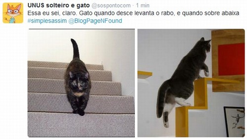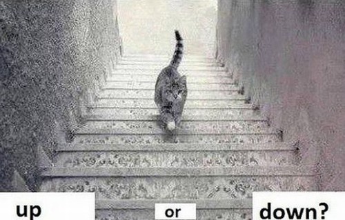 O gato está subindo ou descendo a escada?