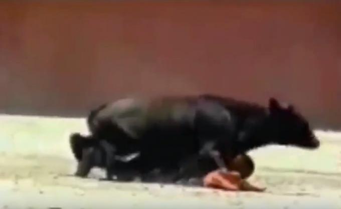 Um vídeo mostra o momento inusitado que ocorreu em uma arena de touros da Espanha. Um touro golpeia uma toureira anã (chamada de matadora, de acordo com a tradição), cai sobre ela e tenta cruzar.