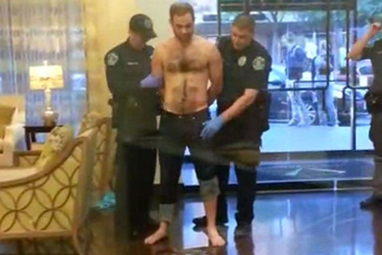 Um vídeo filmado por um hóspede dentro de um hotel nos Estados Unidos mostra o momento constrangedor para um policial, durante uma abordagem a um suspeito que foi barrado na recepção do local.