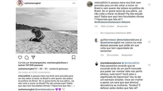 O namorado de Sasha, Bruno Monteleone, rebateu alguns comentários em defesa da jovem. Além dele, outras mulheres também deram exemplo e argumentaram que a estudante tem o direito de se expressar politicamente como cidadã brasileira.