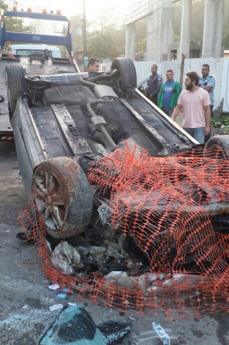 O ator Guilherme Leicam capotou com o carro na madrugada de domingo, na Estrada dos Bandeirantes, em Jacarepaguá, Zona Oeste do Rio.