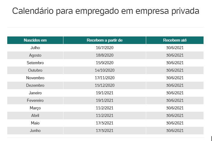 Confira o calendário de pagamento: