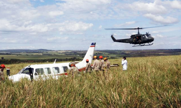 Para evitar o pior, o piloto realizou um pouso forçado em um campo de pastagem ao lado de uma rodovia. No momento do pouso, o piloto bateu a cabeça e teve de ser socorrido por helicóptero com um corte na cabeça e o copiloto acabou chocando o tórax no painel da aeronave.