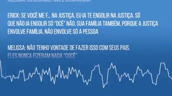 Melissa chegou a gravar parte da discussão, na qual o mineiro afirma que ele é o “homem da relação e tem dominância” sobre ela. O áudio revela ainda ameaças feitas à família da universitária:
