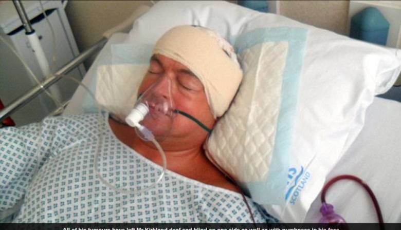O pai de dois filhos, Tommy Kirkland, 44 anos, está lutando pela sexta vez contra um tumor no cérebro e os médicos disseram que ele deverá ter apenas algumas semanas para viver. Devido ao grande número de operações, cinco até então, Kirkland foi avisado pelos especialistas que seu cérebro não irá aguentar uma sexta cirurgia. As informações são do site Daily Mail