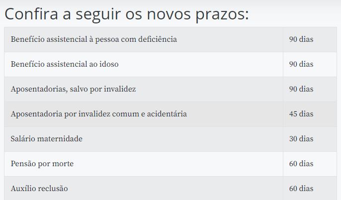 A partir desta quinta-feira (10) começam a valer os novos prazos para concessão de benefícios do INSS. As novas datas foram fruto de acordo da instituição e de outros órgãos do governo federal com o Ministério Público Federal (MPF) e a Defensoria Pública da União (DPU).