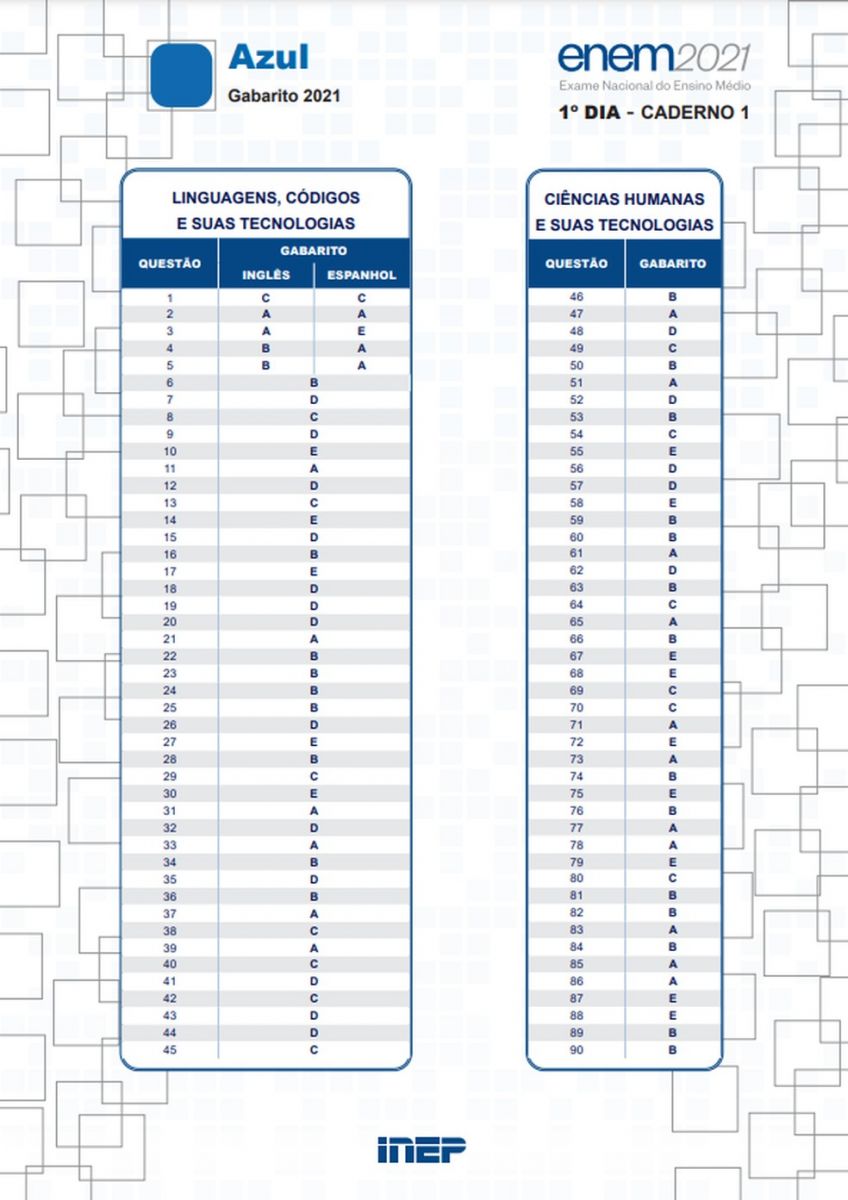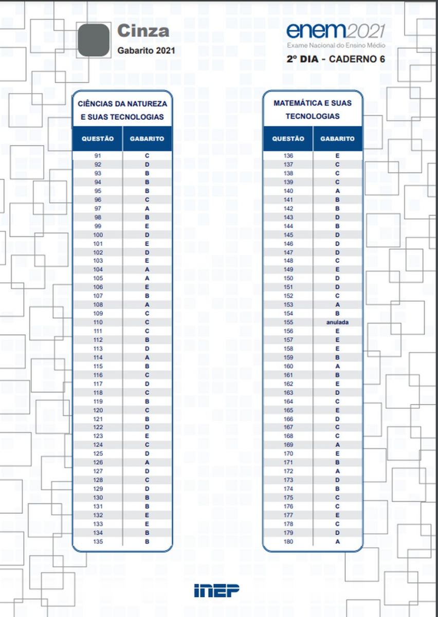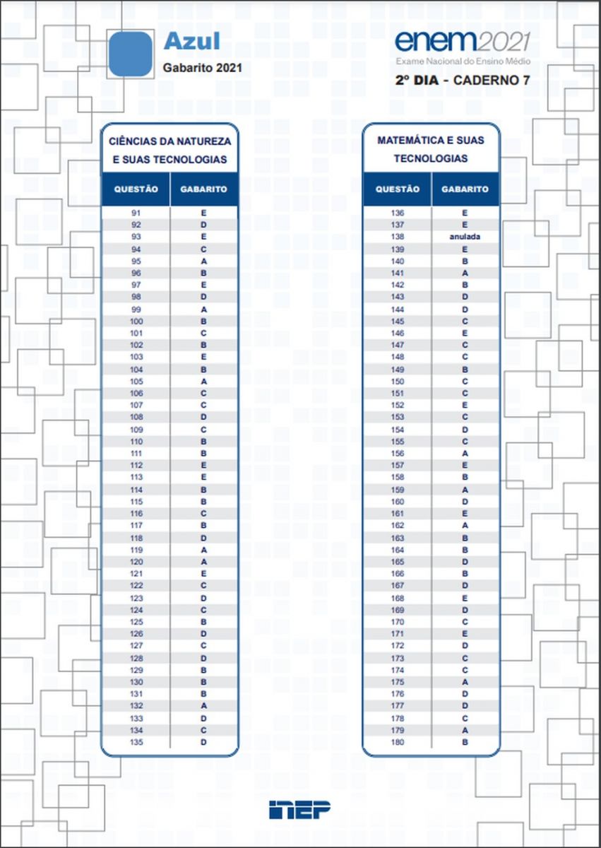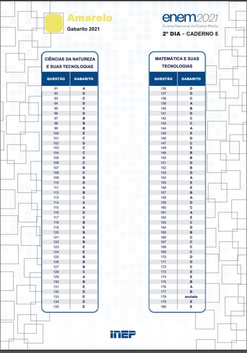 Foi divulgado nesta quarta-feira (1º), o gabarito oficial das provas do Exame Nacional do Ensino Médio (Enem) 2021. Estes resultados valem para a versão impressa e virtual das provas.