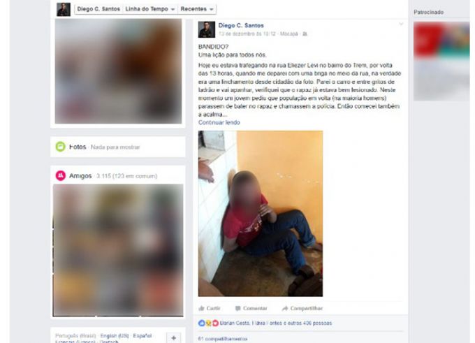 Mais de 60 compartilhamentos e de 140 comentários na rede social Facebook estão repercutindo a história de um homem que teria sido vítima de um golpe, e, confundido com ladrão, teria sido espancado por populares na terça-feira (13), no Centro de Macapá. O drama do funcionário de um hotel foi contado pelo empresário Diego Santos, de 32 anos, na internet.