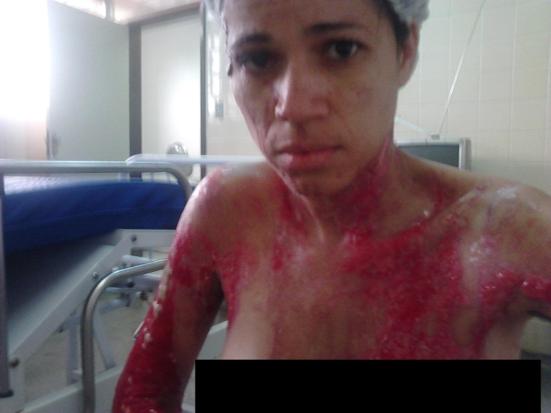 No momento do ataque, por volta de 5h30, Simone estava esperando o ônibus no qual ela mais uma vez pegaria carona - depois de ser agredida, ela foi transferida para o Hospital do Subúrbio, com ferimentos graves. Ainda segunda a 5ª Delegacia, ela foi atingida no rosto, tórax, braços e pernas. Além disso, as roupas dela ficaram queimadas com o ácido.