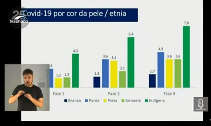 Hallal ia mostrar um gráfico com o índice de mortes por etnia/cor da pele. No estudo também apresentava que os indígenas tinham o maior número de óbitos.