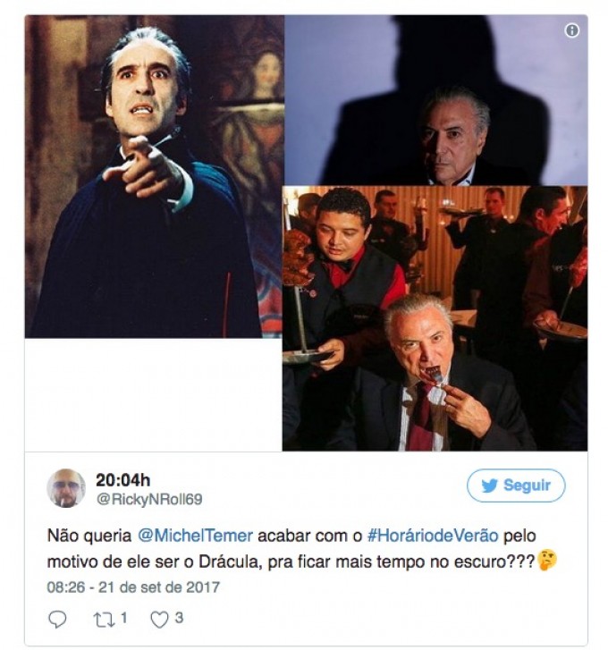 Houve quem também comparasse o presidente ao famoso Conde Drácula, como se Temer estivesse cogitando o fim do horário de verão para não ter que se esconder do sol por uma hora a mais todos os dias.