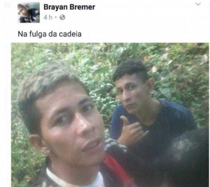 Brayan Bremer, um dos fugitivos do Instituto Penal Antonio Trindade (Ipat) ganhou visibilidade nas redes sociais, após publicar em seu Facebook uma foto se vangloriando por ter fugido da prisão neste domingo (1), a publicação teve mais de 6 mil compartilhamentos e quase 10 mil comentários.