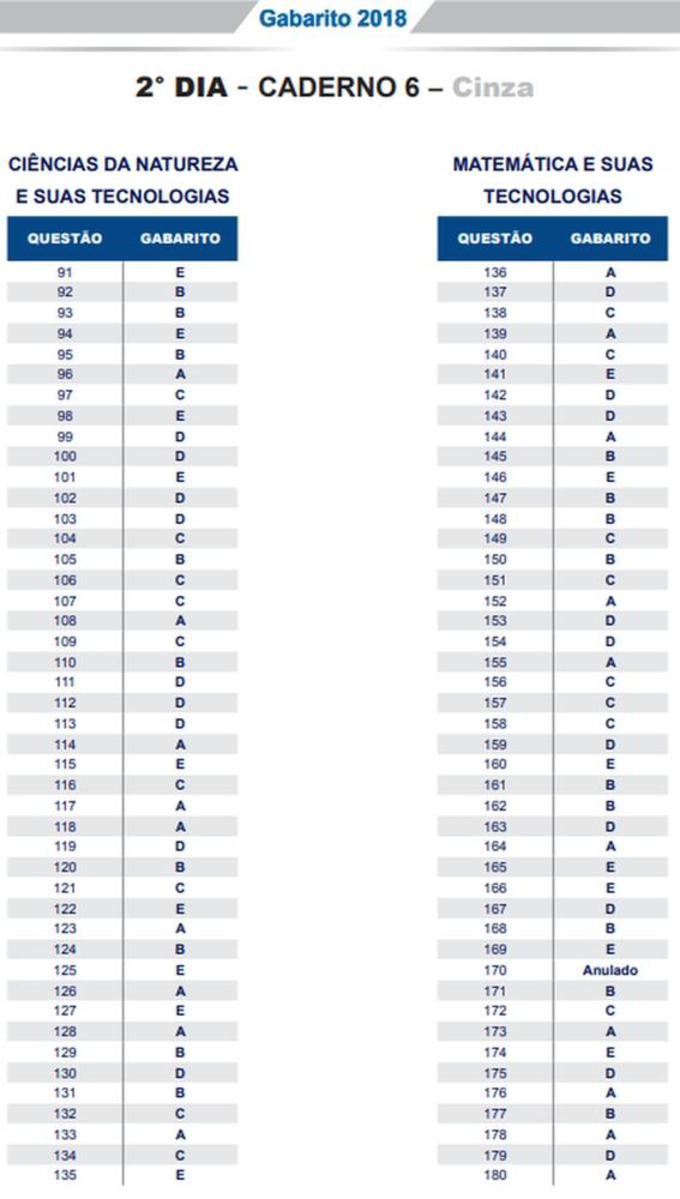 O gabarito está dividido por cor e dia de provas, confira: