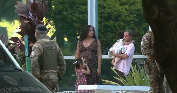 O homem chegou a segurar uma criança no colo durante a negociação com os agentes. Ele estava acompanhado, ainda, por uma mulher e mais uma criança.