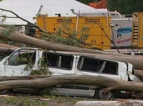 Uma árvore caiu sobre o palco em que a cantora Ivete Sangalo iria apresentar-se em Piracicaba, no interior de São Paulo.