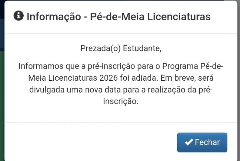 As inscrições para o Pé-de-Meia Licenciaturas, programa do Ministério da Educação (MEC) que concede bolsas de R$ 1.050 mensais a estudantes de graduação em cursos presenciais de licenciatura, foram adiadas sem nenhuma explicação oficial.