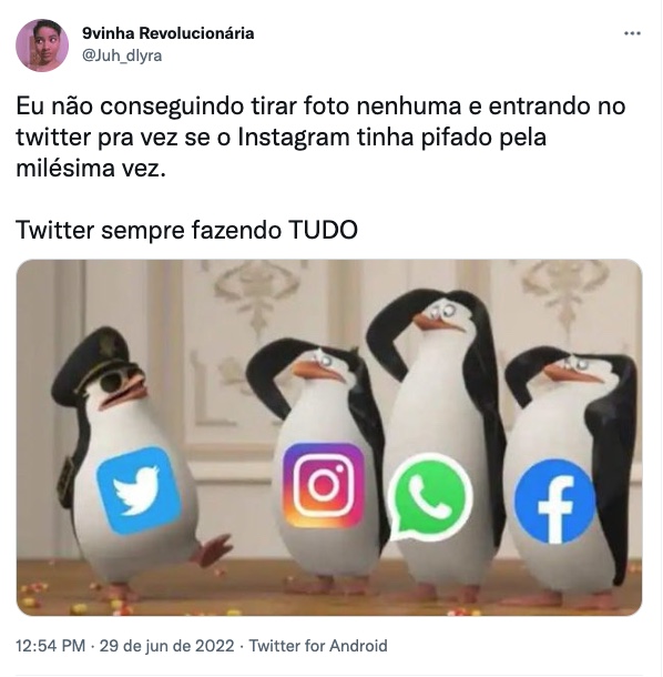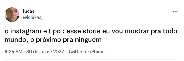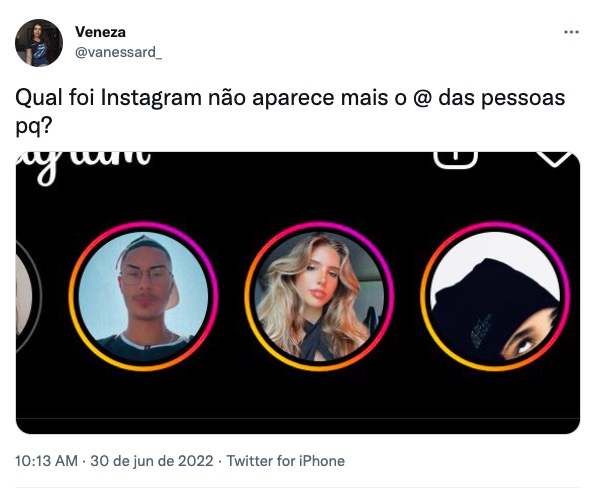 Já outra pessoa informou que não estava conseguindo tirar fotos no instagram. Um usuário também publicou que há uma instabilidade nos stories. "O instagram é tipo: esse storie eu vou mostrar para todo mundo, o próximo para ninguém", escreveu no twitter.