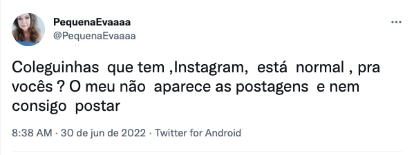 Um usuário relatou que o '@' dos seguidores no instagram não estava mais visível. Outra usuária informou que não consegue fazer publicação. "O meu não aparece as postagens e nem consigo postar", disse a internauta.