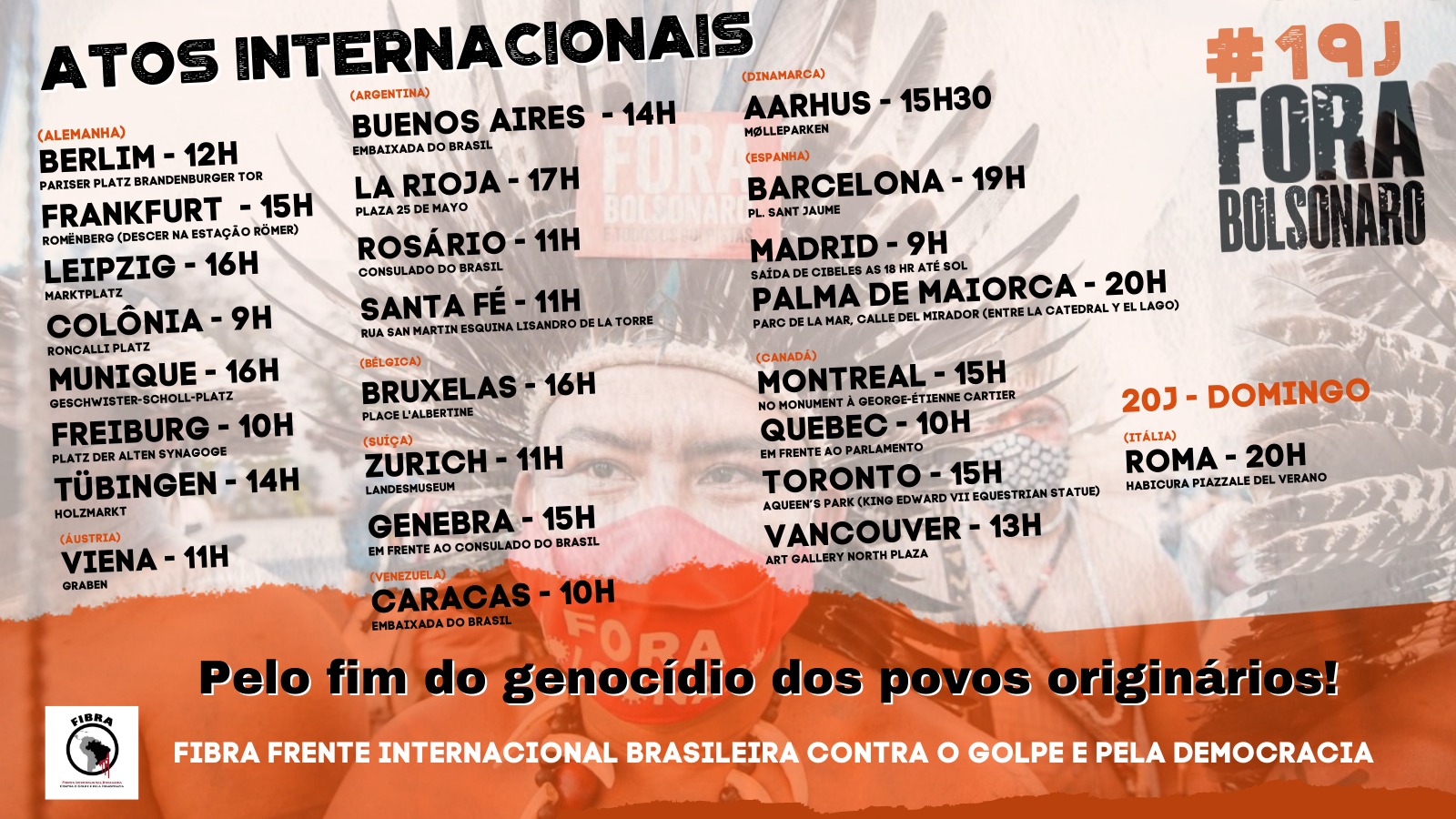 O 19 de junho foi marcado por manifestações em todo o Brasil e também no exterior contra o presidente Jair Bolsonaro. A Torre de Londres, na Inglaterra, um dos principais pontos turísticos, foi palco de uma projeção que chamou atenção a quilômetros de distância, com o rosto do presidente brasileiro.