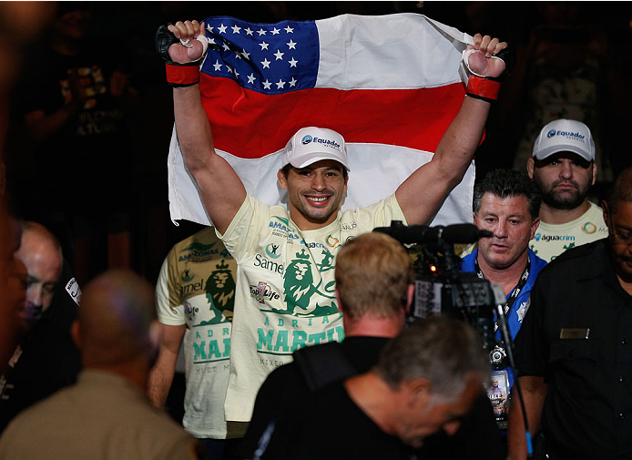 Adriano Martins passou pelo russo Rustam Khabilov. O manauara conquistou a segunda vitória consecutiva no peso leve do UFC, ele vinha de triunfo ante Juan Manuel Puig. Já o russo Rustam Khabilov sofreu a segunda derrota seguida, já que perdera para o ex-campeão Ben Henderson na última participação. Mas os dois decepcionaram pela pouca ação ao longo dos três rounds. E provocaram as vaias que ecoaram pelo Gigantinho. Adriano Martins teve alguns momentos positivos, quando aplicou a queda e chegou a montar, mas não manteve a posição. Em outra ocasião, ele mandou o rival a knockdown em contra-golpe, no fim do segundo round. Já Khabilov nem lembrou o lutador agressivo e de muita movimentação, como mostrou em outros duelos. No fim, o triunfo ficou com o brasileiro, que levou a melhor na preferência dos juízes.