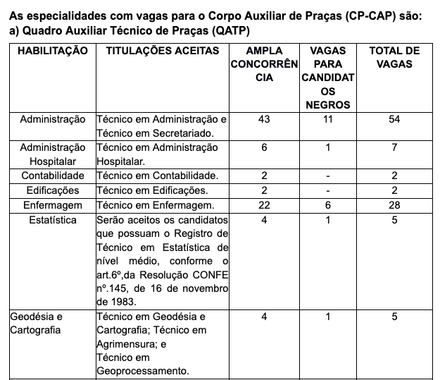 Processo Seletivo: Concurso Público para Ingresso no Corpo Auxiliar de Praças (CP-CAP).