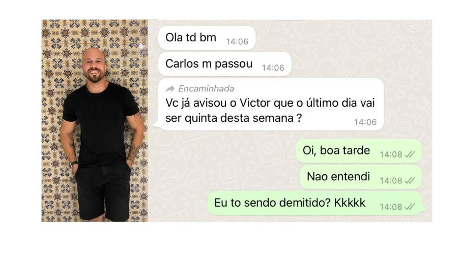 De acordo com o médico, o funcionário da empresa encaminhou a mensagem de demissão informando se ele sabia da demissão, mas ele não sabia.