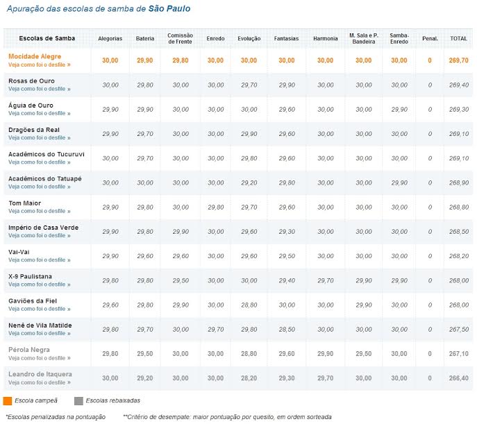 A escola conseguiu desfilar em cravados 65 minutos. "Graças a Deus deu tempo", disse a presidente Solange Cruz, que foi atendida no posto médico mas retornou ao desfile.