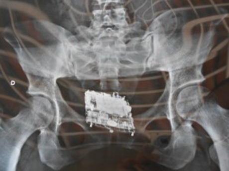 De acordo com o diretor, a agente penitenciária da Cadeia de Quixadá percebeu um escorrimento na região genital de uma auxiliar doméstica. Ela pretendia visitar o marido. Para evitar algum constrangimento desnecessário, já que ela negava a existência de qualquer objeto introduzido no seu corpo, a alternativa encontrada foi conduzi-la até o Hospital Municipal Eudásio Barroso, onde foi feito o Raio X. Quando a chapa foi revelada a equipe da Cadeia Pública ficou surpresa. Havia um aparelho celular no ânus dela. O objeto mede 5cm de largura por 6,5cm de comprimento. Estava num preservativo.