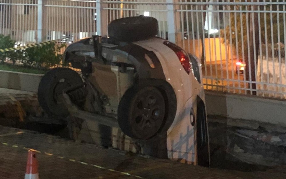 Ao olharem pela janela, avistaram o veículo dentro do abismo. Por pouco outro carro que estava ao próximo também não foi levado. Ninguém estava na área na ocasião do acidente. A extensão da cratera é maior que a de dois carros juntos e estrutura do muro e da grade que cerca o espaço também ficou comprometida. As causas do desmoronamento ainda não foi identificada, mas o veículo já foi içado do buraco.