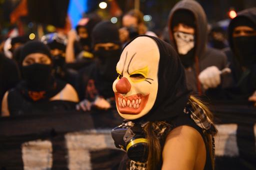 "Sem hipocrisia, a polícia mata todo dia!", gritavam os anarquistas vestidos de preto e com os rostos cobertos, enquanto caminhavam pela avenida Rio Branco, cujo tráfego foi interrompido no horário do rush.