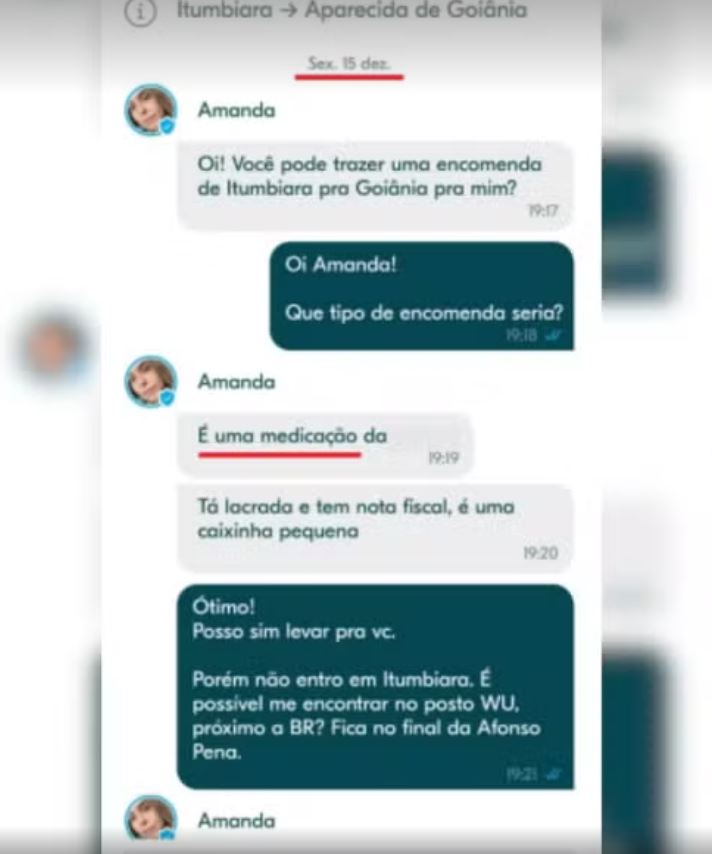 Ao ver a notícia da morte das vítimas nos noticiários, ele entrou em contato com a delegacia e contou que havia sido contratado por Amanda para transportar uma medicação de Itumbiara para Goiânia no dia anterior ao crime.