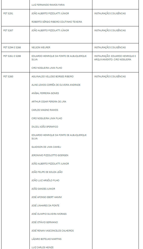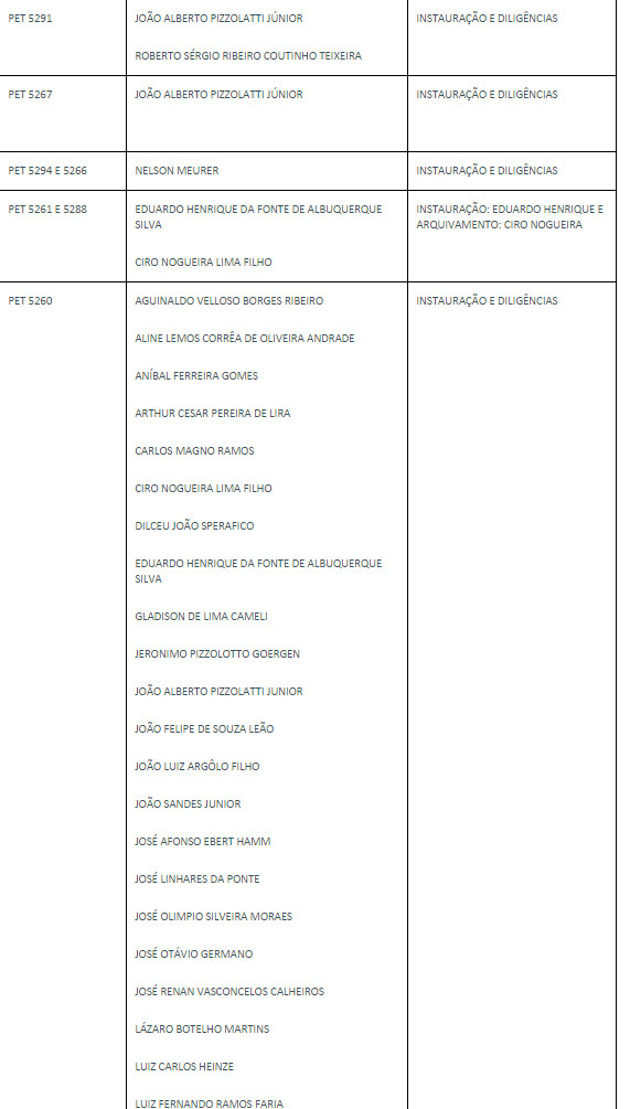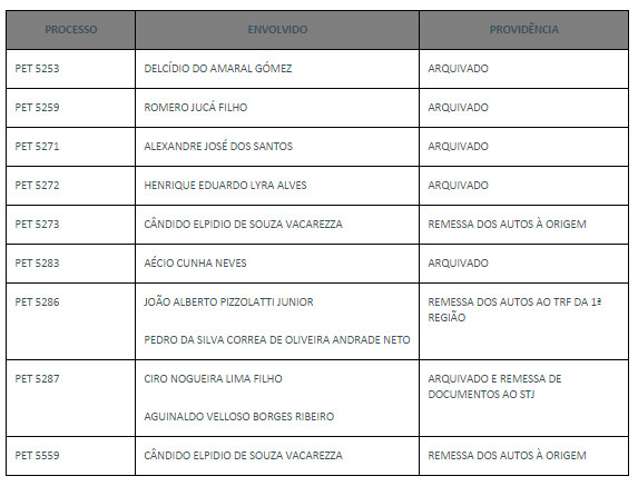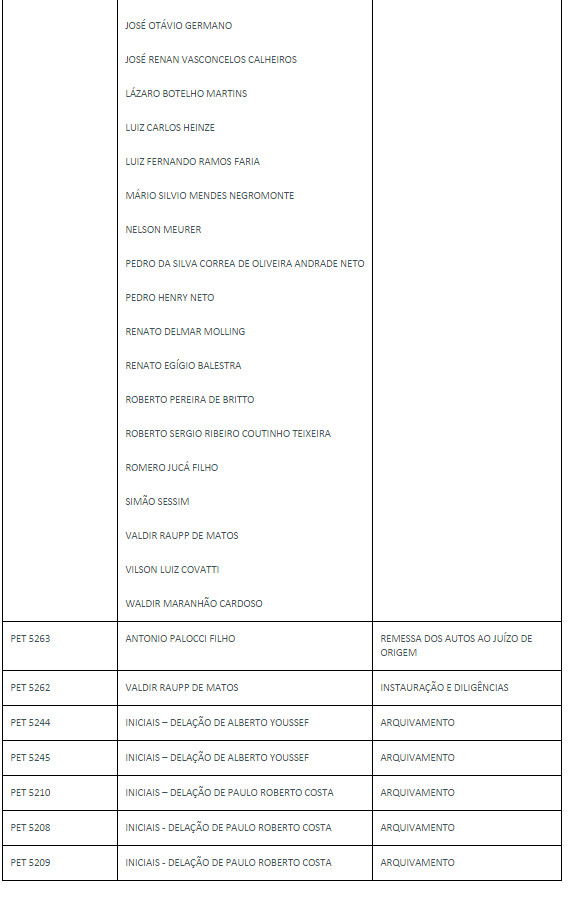 Referentes ao mesmo tema, foram deferidos ainda seis pedidos de arquivamento de procedimentos preliminares que tramitavam em segredo de justiça. Nas decisões, o ministro argumenta que, de acordo com a jurisprudência da Suprema Corte, é irrecusável, por parte do Tribunal, pedido de arquivamento apresentado pelo procurador-geral da República, ainda que possa eventualmente considerar improcedentes as razões invocadas.