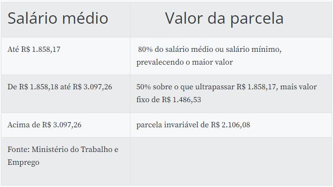A parcela do seguro-desemprego é calculada com base na média das três últimas remunerações do trabalhador antes da demissão. Após a correção das faixas salariais, o benefício será definido da seguinte forma.