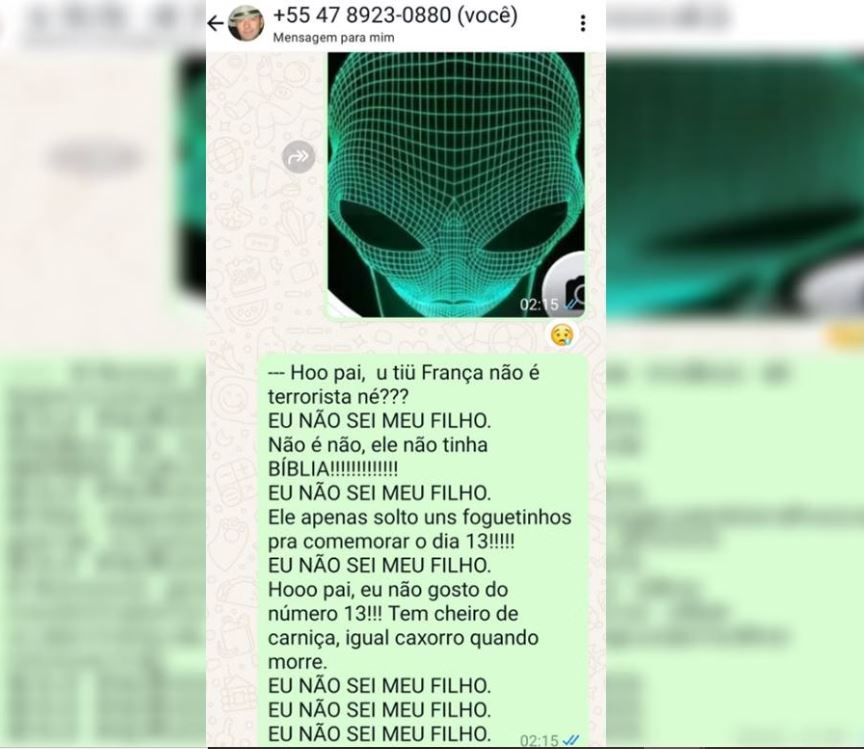 Na sequência, ele simula uma conversa na qual discorre sobre ser ou não um “terrorista” e chega a indicar que “soltaria uns foguetinhos” no dia 13, fazendo correlação entre o dia escolhido para realizar o atentado e o número usado por Lula em sua campanha eleitoral.