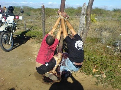 Dois policiais baianos foram levados por bandidos, membros de gangues, para um local distante das residências, onde tiveram mãos e pés amarrados em uma estaca de madeira, junto a uma cerca, e então, foram executados a tiros na cabeça.