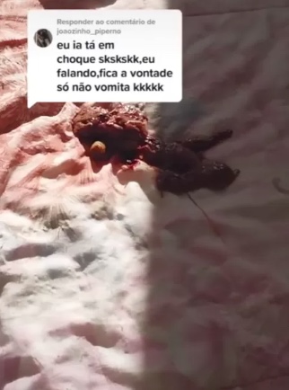 O Tiktoker Nathan Vargas, de 20 anos, foi surpreendido com a visita de um urubu, que antes de sair, ainda deixou um presente nada agradável em cima da cama do jovem. O caso aconteceu em Alvorada, Rio Grande do Sul.