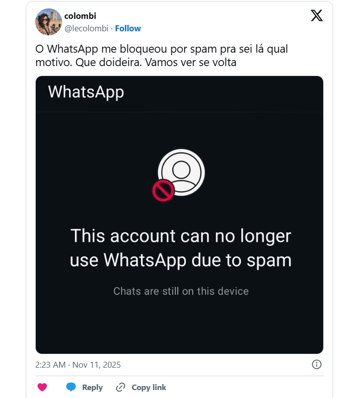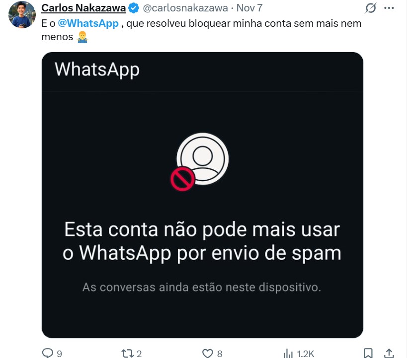 Nas redes sociais, os donos das contas alegam que receberam uma mensagem do aplicativo contendo o aviso e logo em seguida, já não conseguiram mais ter acesso aos conteúdos das conversas.