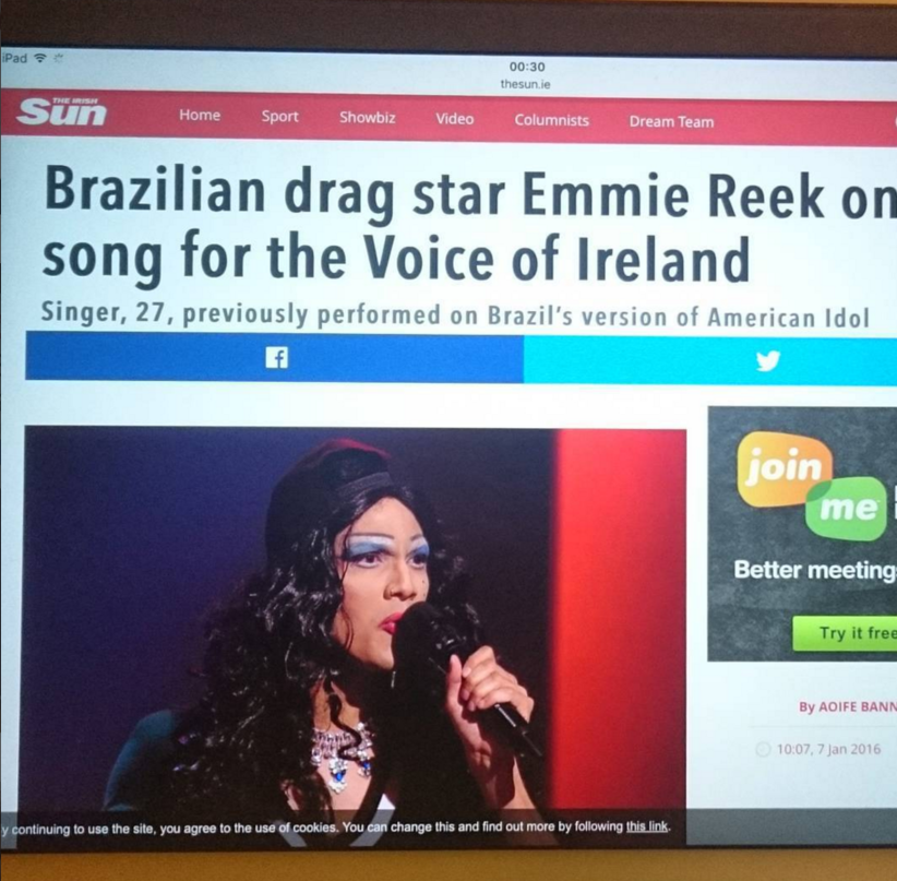 O brasileiro de 27 anos se tornou assunto em jornais internacionais já que foi a primeira drag queen a se apresentar no programa irlandês, e fez um relato de como foi a experiência, após brilhar para todos na TV irlandesa.