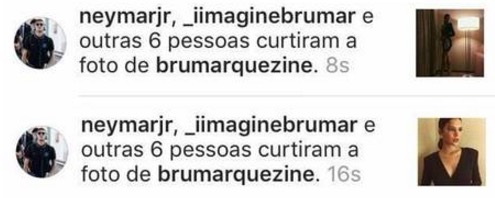 Parece que Neymar está com saudade de Bruna Marquezine. Em Manaus, onde vai jogar pela seleção contra a Colômbia nesta terça-feira (6), o jogador tem passado o tempo stalkeando a atriz.